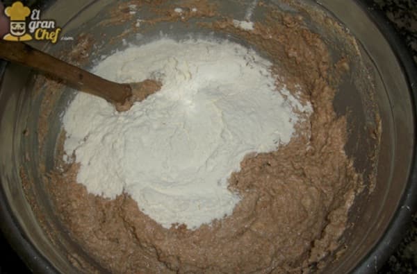 De a poco, iremos agregando los secos al bol de la mezcla de levadura.