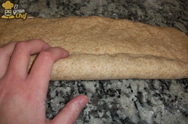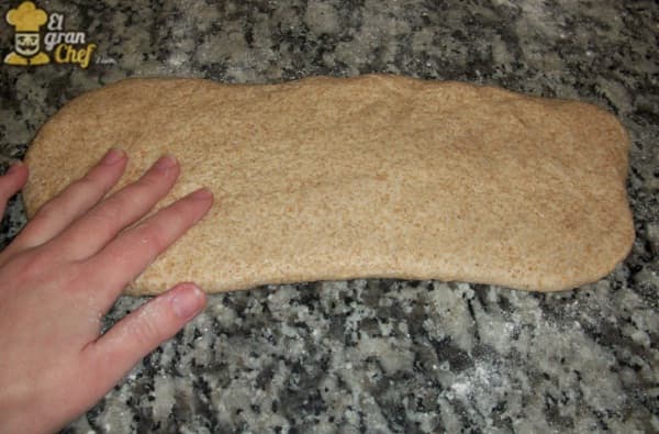 En funcion de eso, separaremos la masa principal. Si elegimos realizar panes grandes, estiramos la masa dandole forma rectangular preferentemente.