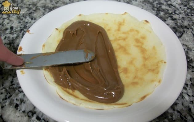 Calentaremos una panquequera o sartén y colocaremos una cucharadita de mantequilla para que se derrita en la sartén y el panqueque no se pegue. Cuando la manteca esté fundida debemos colocar una medida de cucharón de mezcla y la esparciremos sobre la panquequera para que cubra el fondo y tome la forma característica.