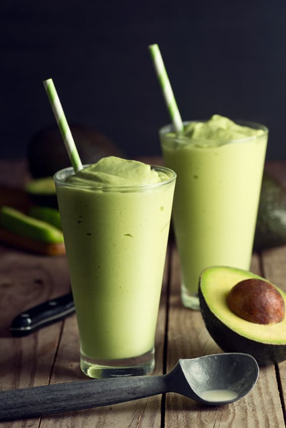 Sirve en vasos altos el licuado cremoso de aguacate.
