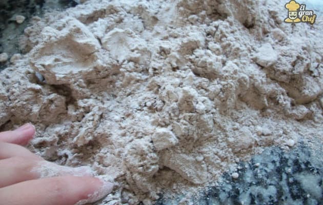 Al principio parecerá que no se hará una masa pero, luego de trabajarla un tiempo, notarán que se forma una masa perfectamente. Si la yema es un muy chica, agregamos 2 o 3 cucharadas de leche para ayudar a unir los ingredientes.
