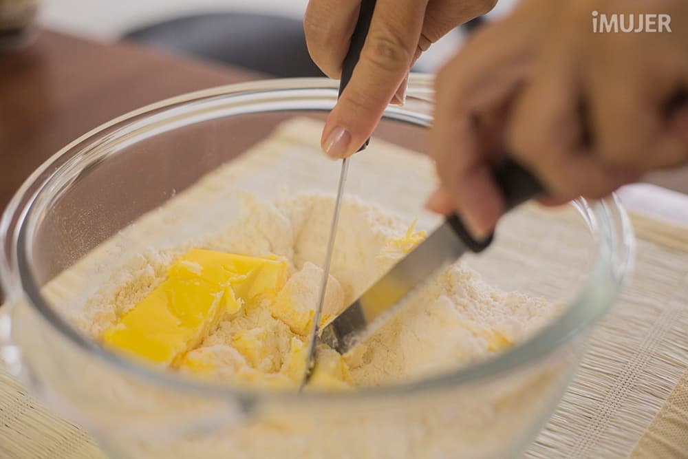 Incorpora la mantequilla fría y deshazla. Agrega también el pimentón junto con el polvo de hornear y revuelve.
