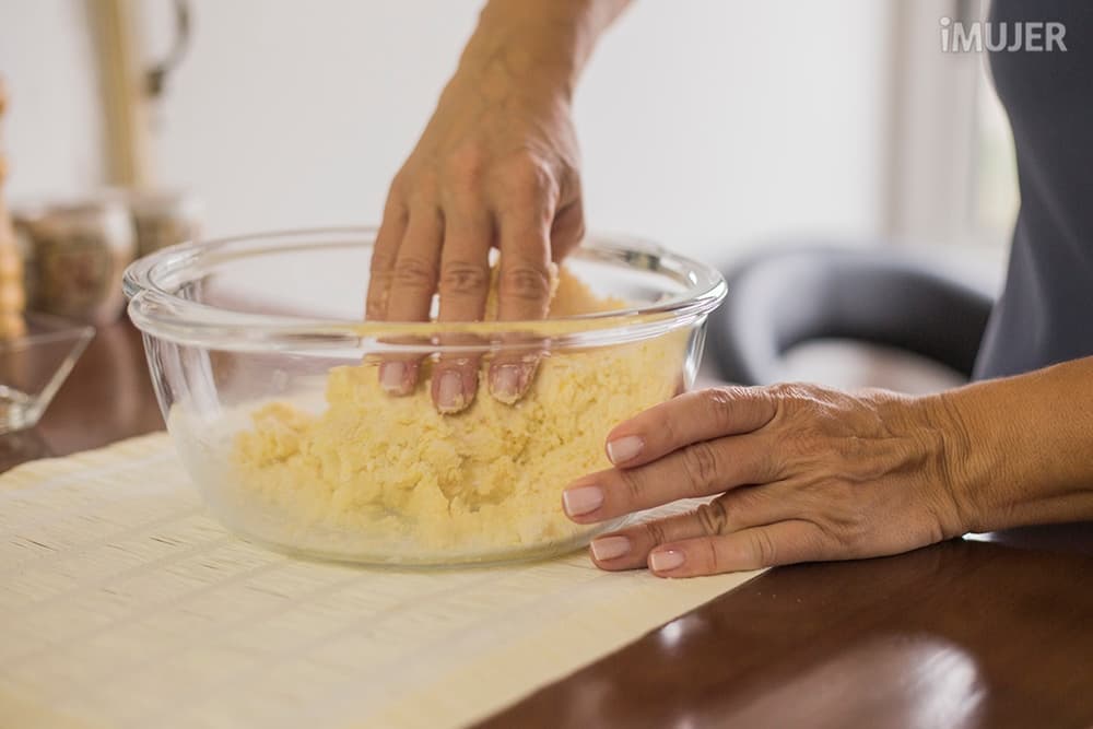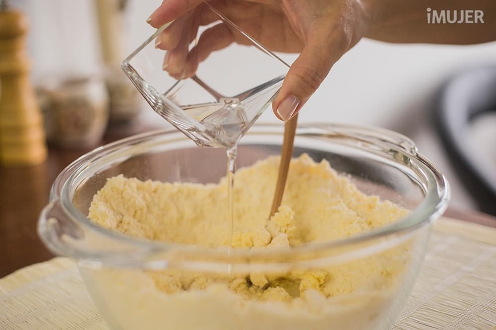 Forma un hueco en el centro de la preparación y vierte algo de agua.