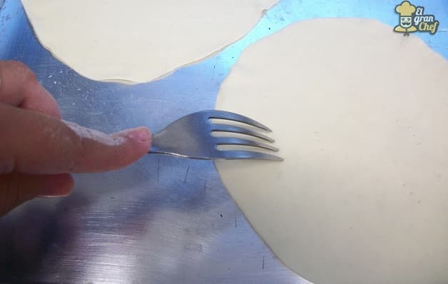 Paso 2: Pinchamos la masa con un tenedor para que no se inflen tanto durante la cocción y llevamos a horno fuerte hasta dorar.