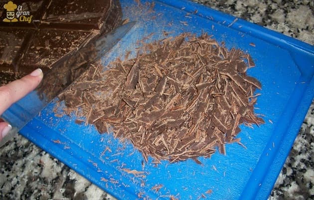 Para comenzar, picamos el chocolate lo más fino posible.