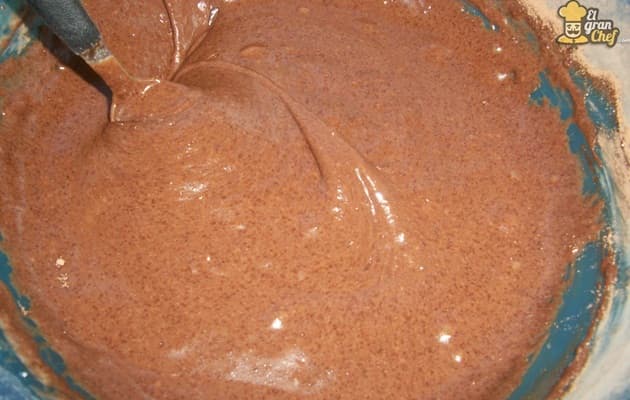 Para comenzar, tamizamos la harina junto con el cacao amargo. Luego lo unimos con el azúcar y mezclamos hasta integrar los ingredientes.