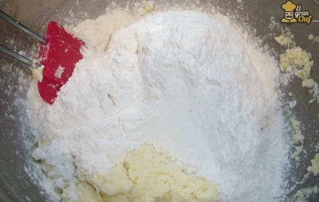 Ahora, comenzamos a agregar la harina. Incorporamos toda la harina leudante y de a poco, la común.