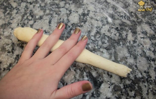 Después, estiramos rollitos de aproximadamente 1 cm de espesor.