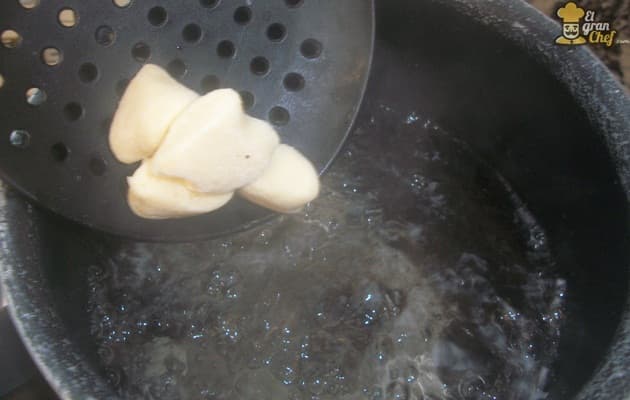 Cuando suben a la superficie de la cacerola, retiramos del fuego, colamos y servimos.