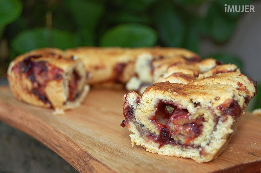 Retira del horno, espera a que se enfríe un poco y desmolda. Antes de probarla te recomiendo que la dejes enfriar, la mermelada toma mucha temperatura y puedes quemarte si te apuras a comerla.