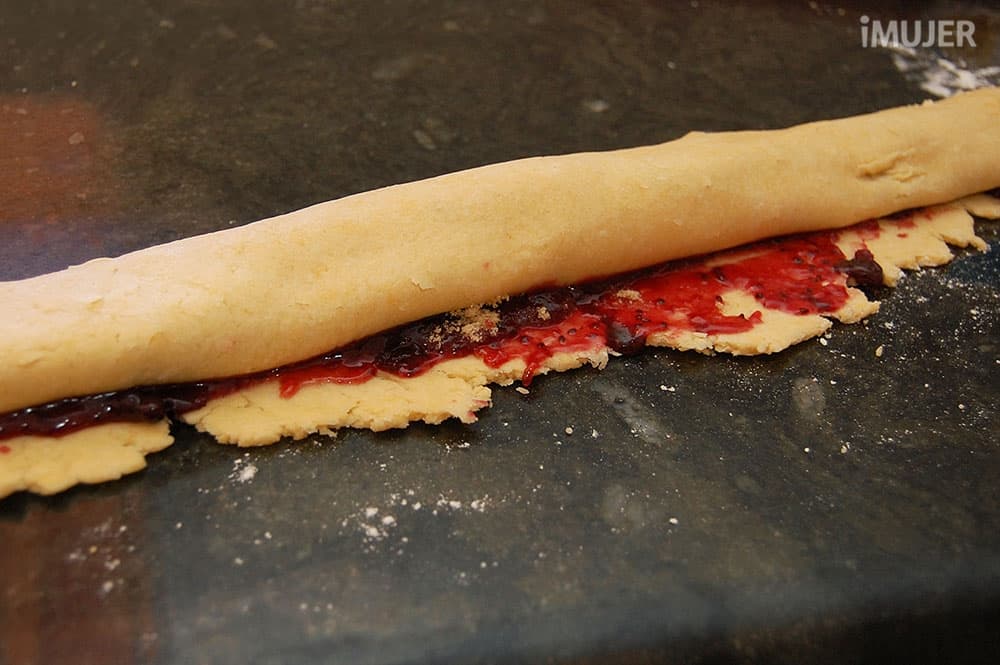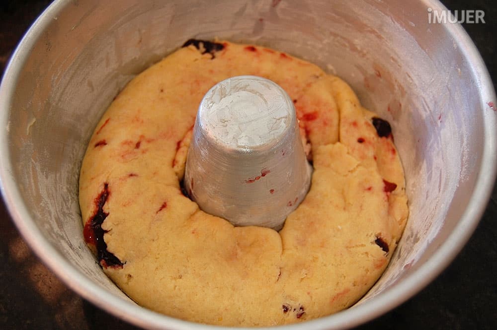 Enrolla la masa y coloca en un molde savarín enmantecado y enharinado.