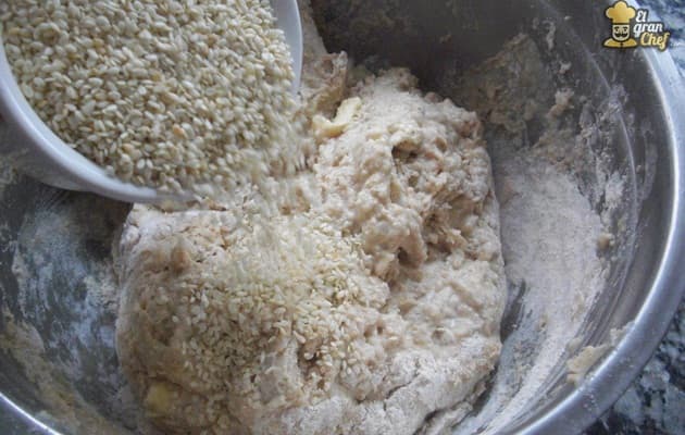 Cuando tenemos una masa casi lista, incorporamos las semillas y los cereales.