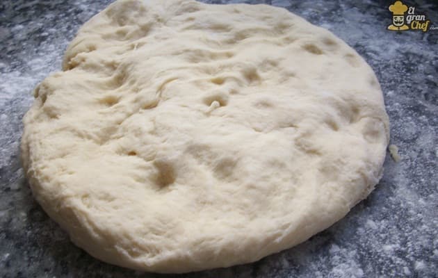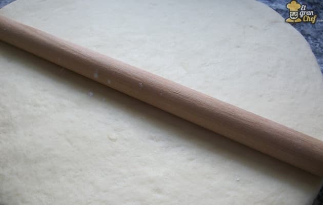 Estiramos sobre la mesada levemente enharinada. Este paso lo realizamos con un palote y el espesor aproximado será de 1 cm. Si bien la verán delgada al realizarla, tomen en cuenta que esta masa volverá a levar y seguirá creciendo en el horno también.