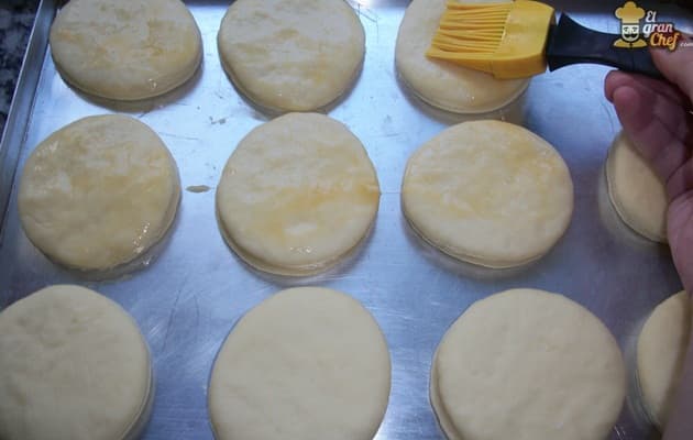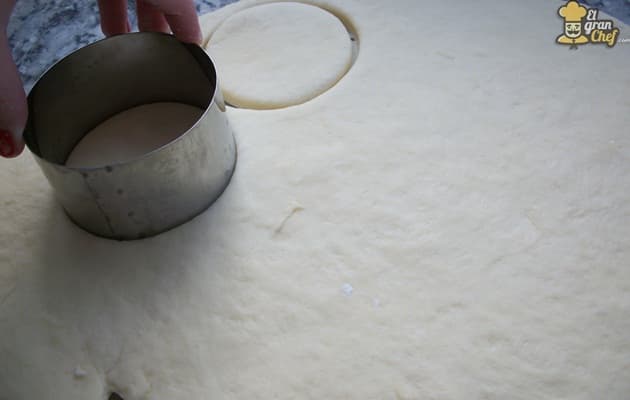 Cortamos círculos con un cortante de 6 cm de diámetro y disponemos los círculos en una placa para horno.