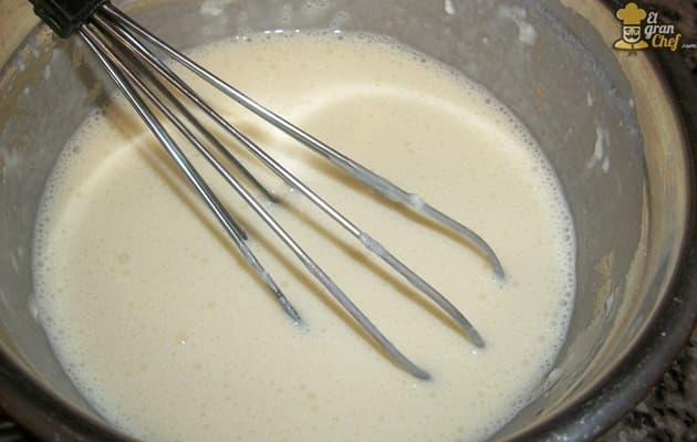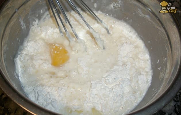Agregamos el huevo y la leche. Comenzamos a batir.