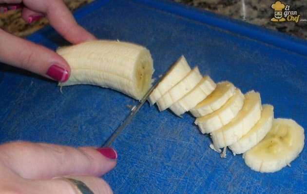 Por otro lado, pelamos y cortamos una banana en rodajas.
