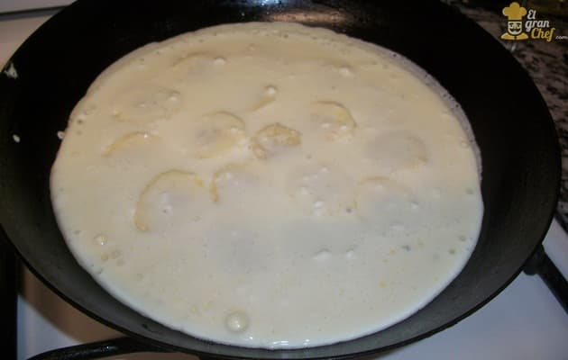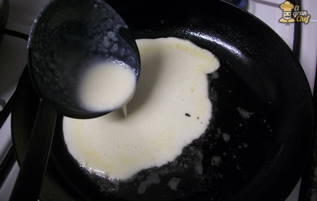 La cantidad de mezcla aproximada para una sartén estándar será de medio cucharón (de esos que se usan para servir la sopa).