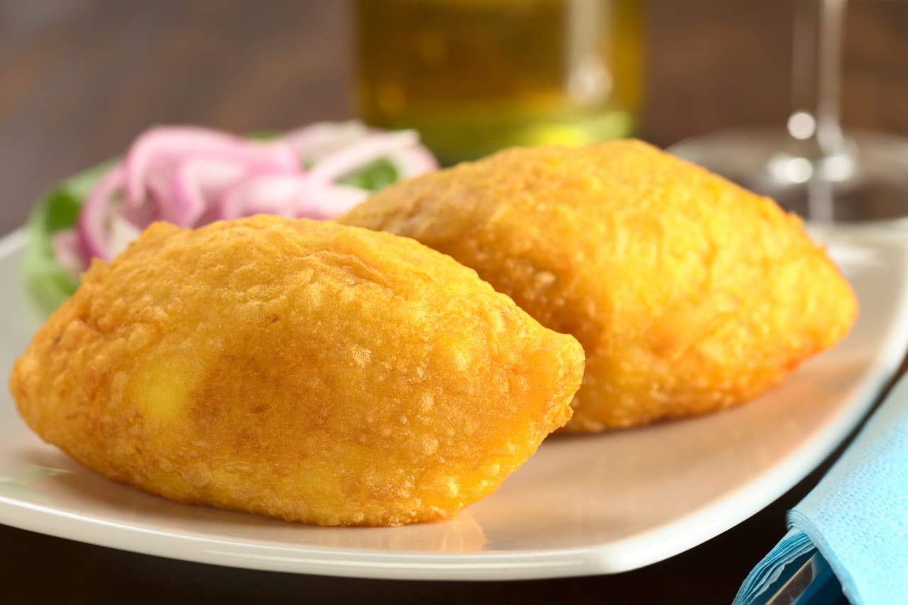Pon grasa en una sartén grande (suficiente para que llegue a la mitad de la papa) y deja que se caliente a fuego moderado. Fríe las papas rellenas por ambos lados, dejando que se cocinen 2 o 3 minutos cada cara. Espera a que luzcan doradas y saca con cuidado para una bandeja.