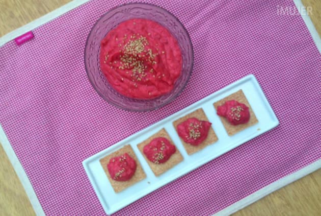 Muy bien, sé que algunas ya se están poniendo nerviosas por las calorías y por la comida poco saludable, así que ahora te propongo comer las papas fritas con este delicioso y sano dip de remolacha.