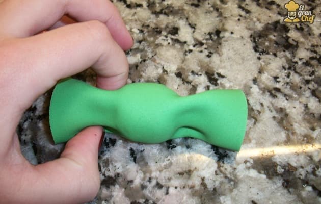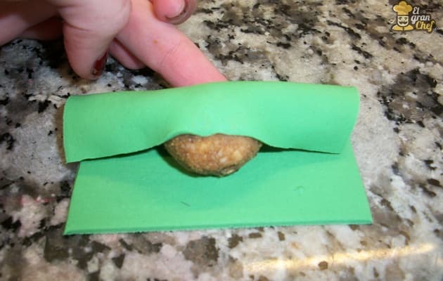 Presionamos y retiramos el excedente, intentando que la forma en este caso no sea tan circular, sino más bien ovalada.