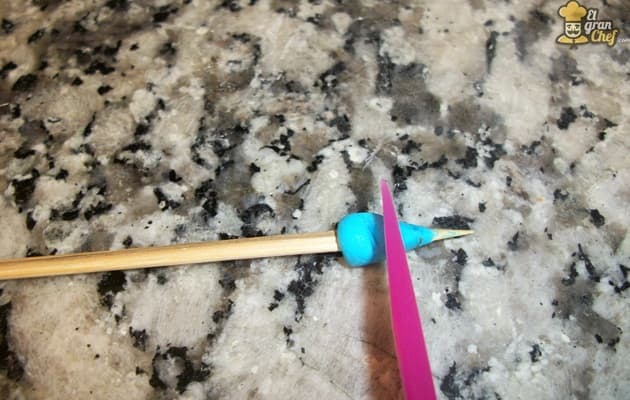 Por otro lado, colocamos un triángulo de masa en el extremo del palito que usaremos para pinchar luego.