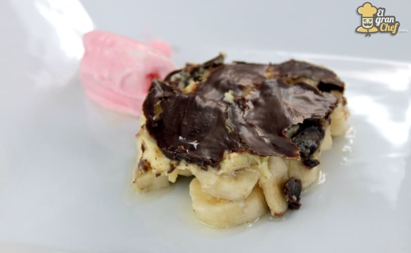 Postre de bananas con chocolate y helado