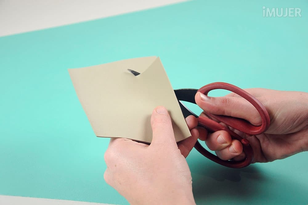 Toma la tijera y el cartón y recorta varias aletas de tiburón.