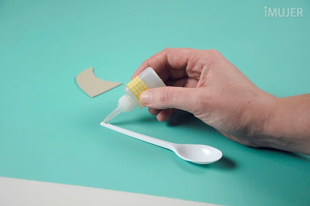 Cuando tengas todas listas pégalas en el extremo de las cucharas.