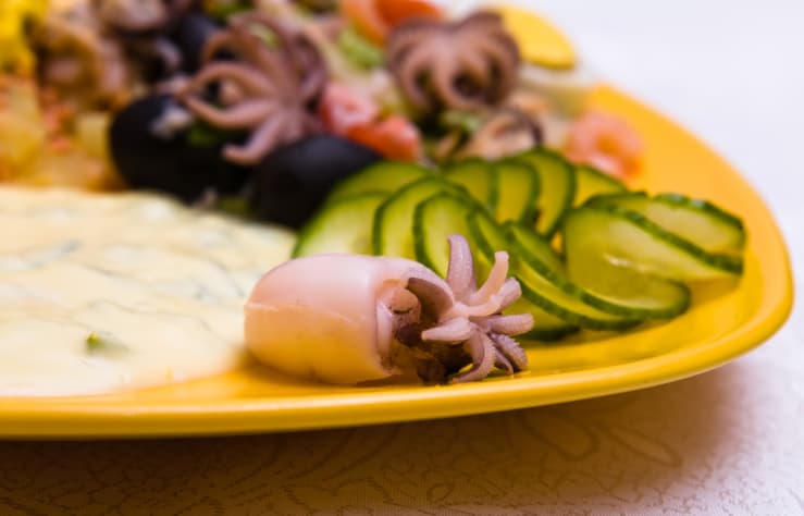 ¡Ya está listo para comer este exótico y delicioso plato de pulpo a la vinagreta que de seguro no olvidarás!