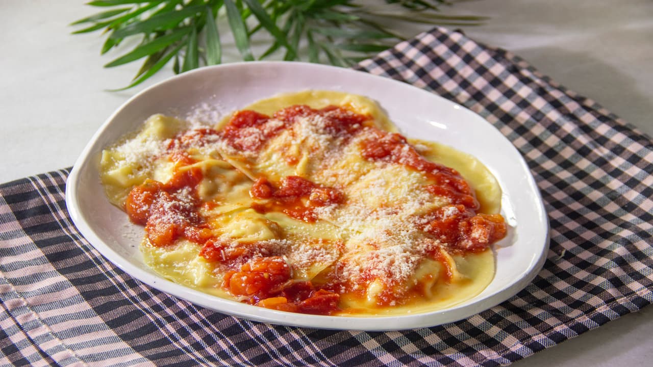 Prepara en casa ravioli rellenos de queso ricotta y jamón, quedarán deliciosos perfectos para un almuerzo o cena especial.