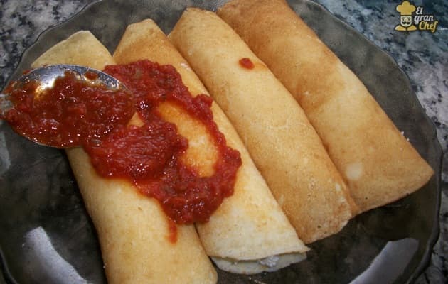 Comenzamos por un extremo (el más lleno de relleno) y enrollamos cual panqueque.