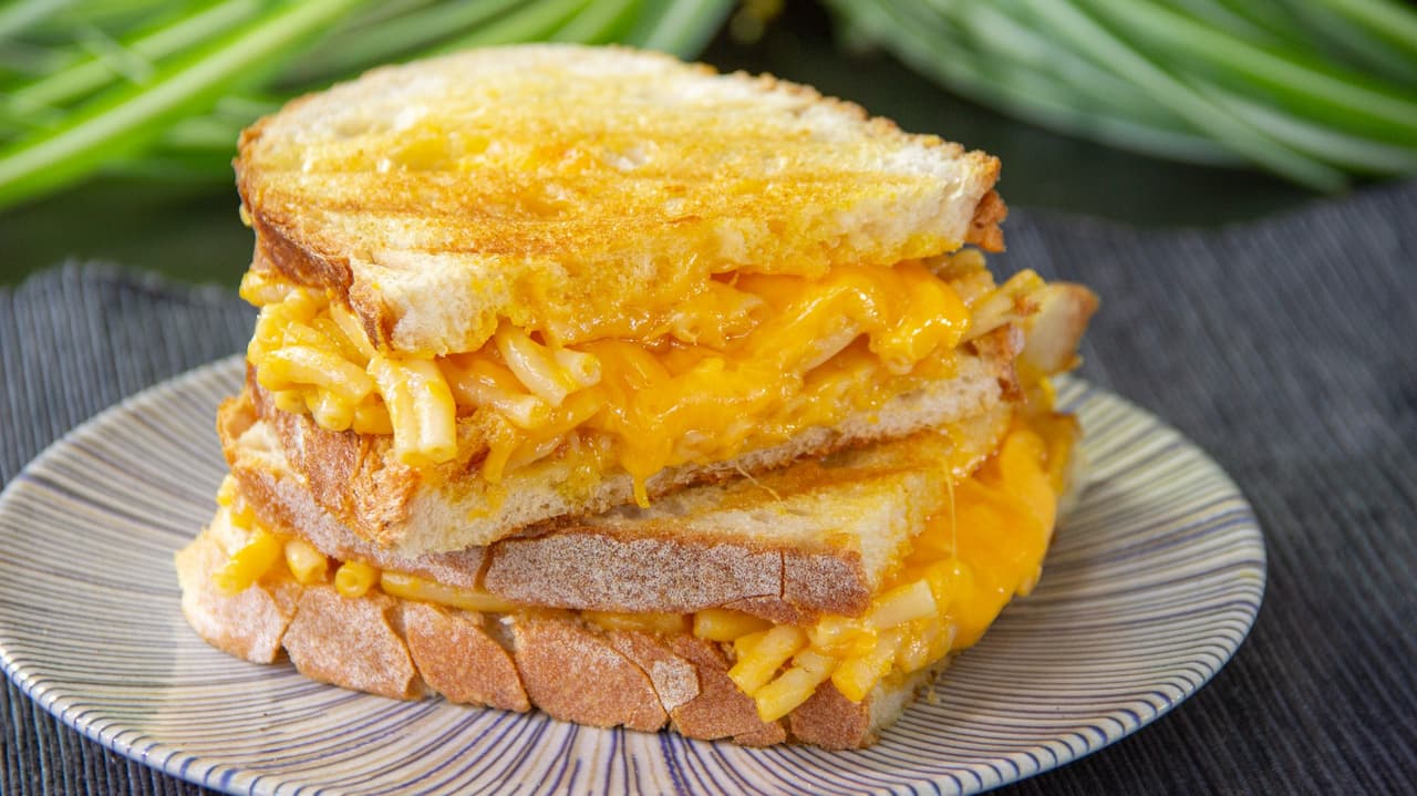 El mac and cheese ya es rico, ahora imagínalo en un delicioso sándwich lleno de queso. ¡Queda deliciosoy es muy fácil de hacer!