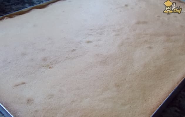 Al retirarlo del horno queda así. Espolvorea con un poco de azúcar y enrolla el pionono hasta el momento de rellenarno.