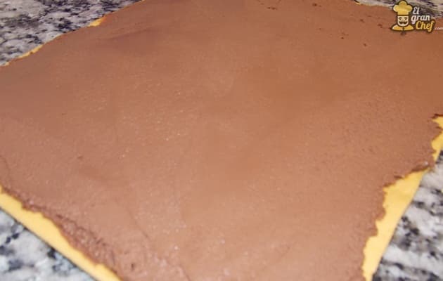 Rellena el pionono con una parte de la crema y reserva la otra para la cubierta. Enrolla el pionono con cuidado.