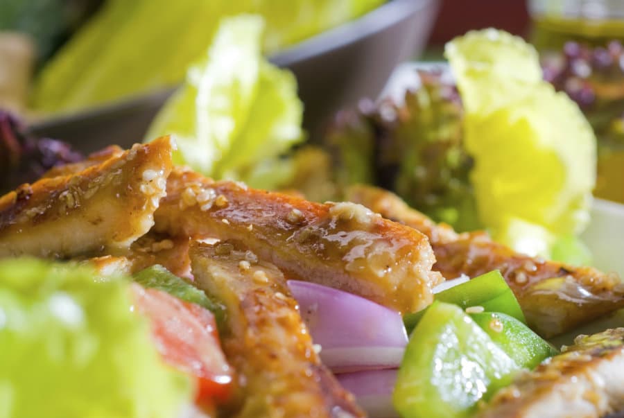 Pela la raíz del jengibre y córtala en pequeños trozos. Y el ajo en dos partes. Añade el ajo y el jengibre en la sartén con los puerros y pimientos, cuando esté listo agrega las pechugas condimenta y coloca el caldo de pollo hasta que se reduzca. Luego, sirve enseguida.