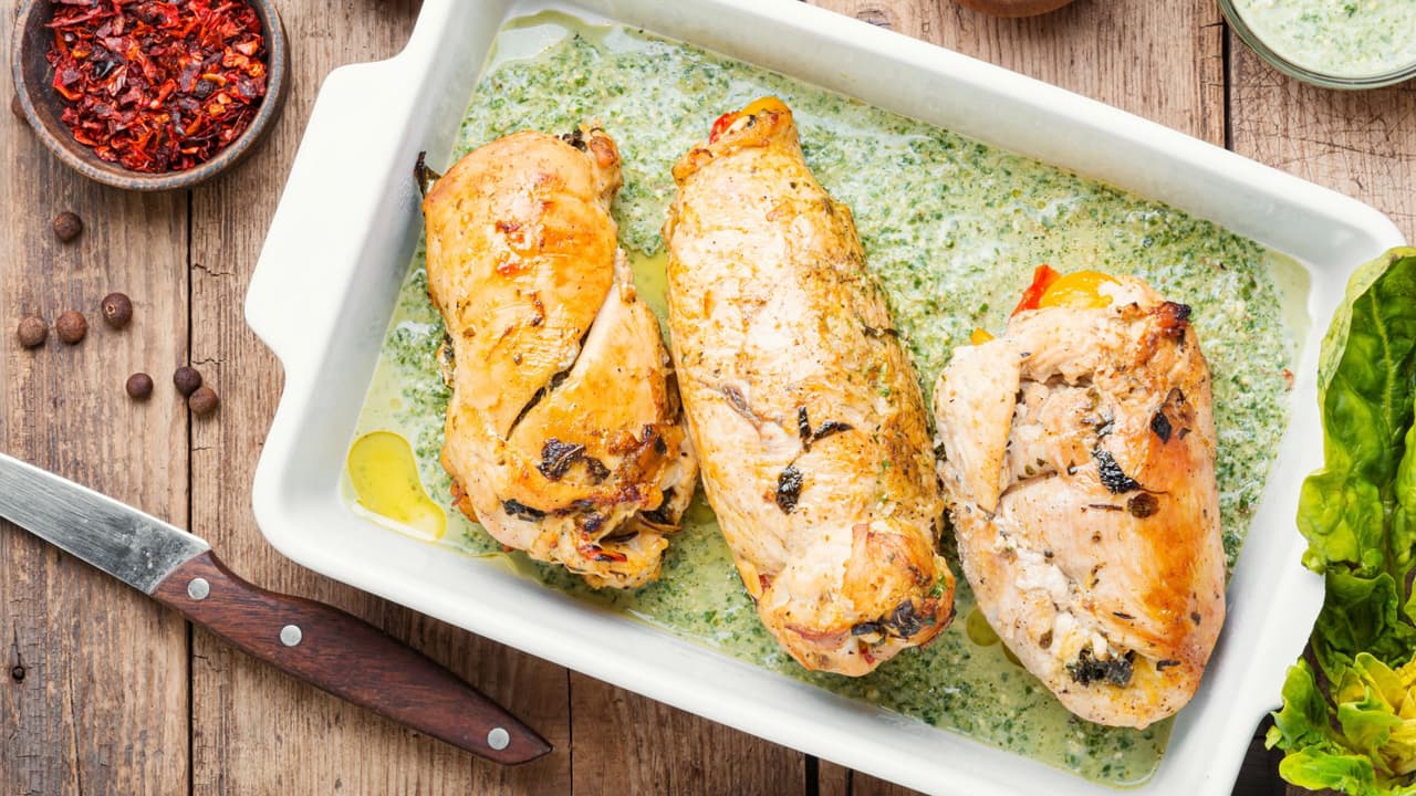4. Pechugas de pollo rellenas con salsa Alfredo