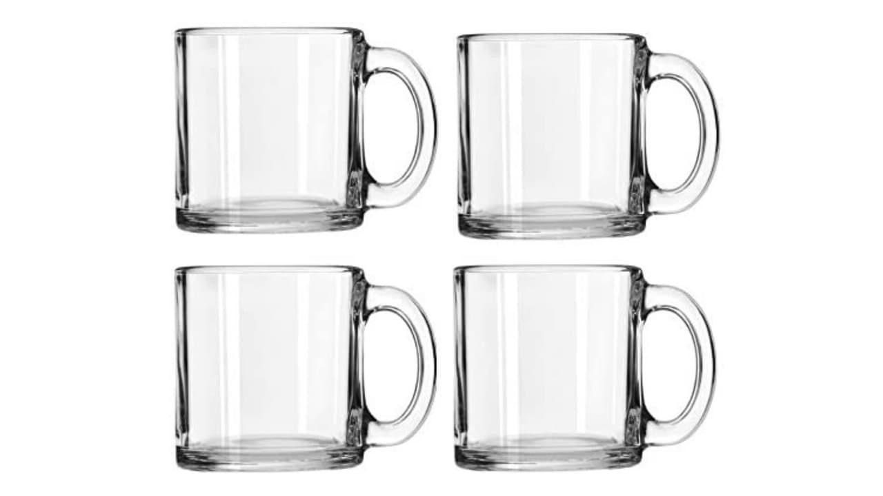 Juego de 4 tazas de vidrio de Amazon. Precio: $21.99.