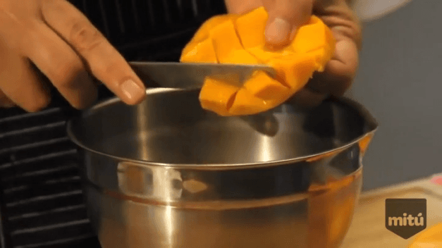 Corta el mango en cubos medianos.