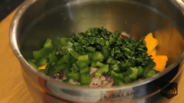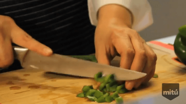Pica 1/2 pimiento y la cebolla.