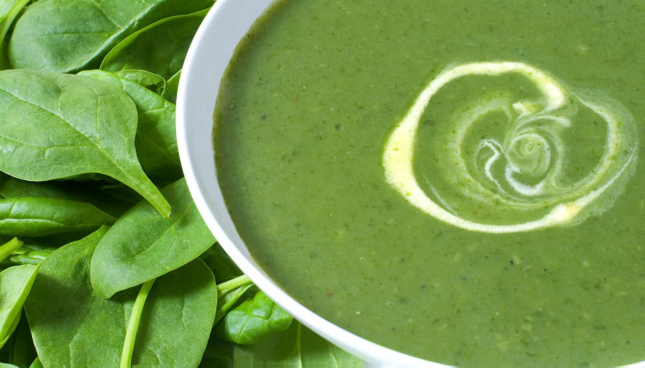 Cocina la papa en el caldo de verduras, añade la espinaca ya rehogada y cocina por unos minutos más. Luego, bate la sopa en la batidora o mezclador, después llévala otra vez a la olla y pon la crema de leche. Puedes servir la sopa con cebolla de verdeo.