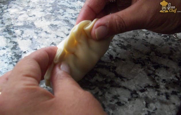 Repetimos este proceso en toda la empanada, hasta llegar al otro extremo, y cerramos bien.