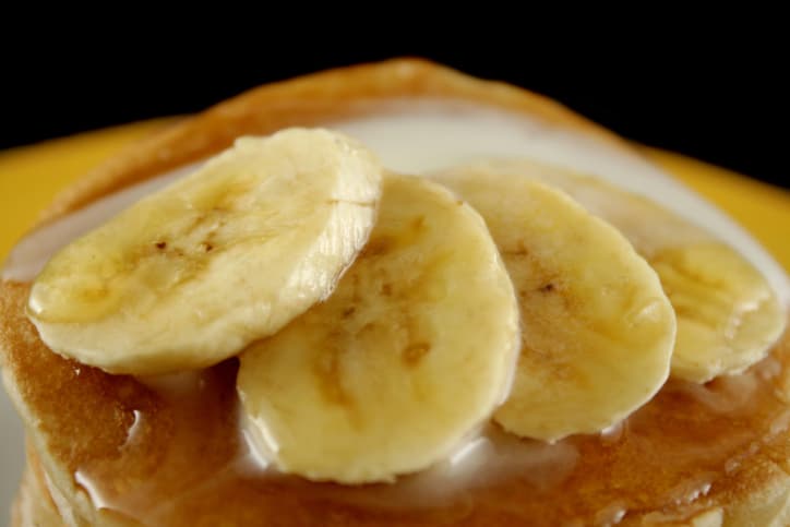 Luego de que los panqueques se encuentren listos, colócalos en un plato, rocía un poco de chocolate derretido a baño maría, y añade unas pequeñas rodajas de banana como decoración.
