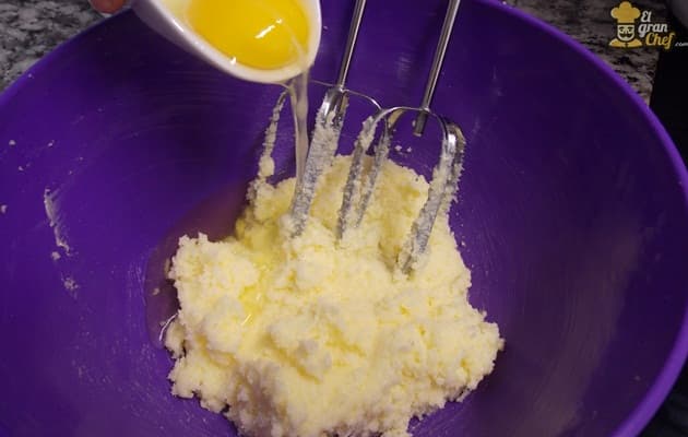 Batimos la mantequilla a punto pomada -cuando comienza a ablandarse- junto con el azúcar hasta formar un cremado.