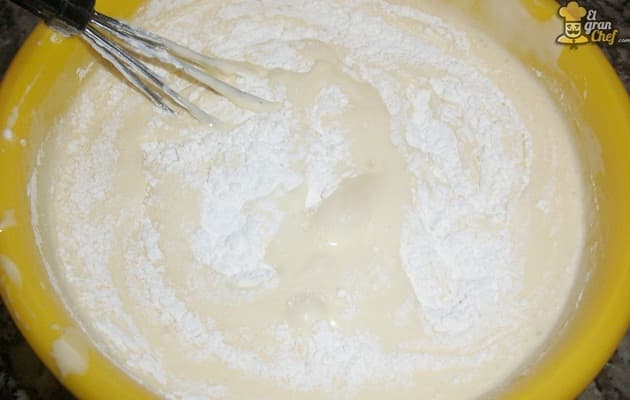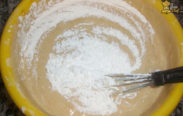 Sumamos la segunda parte de la harina y ya notaremos que la masa tomará más consistencia y densidad.