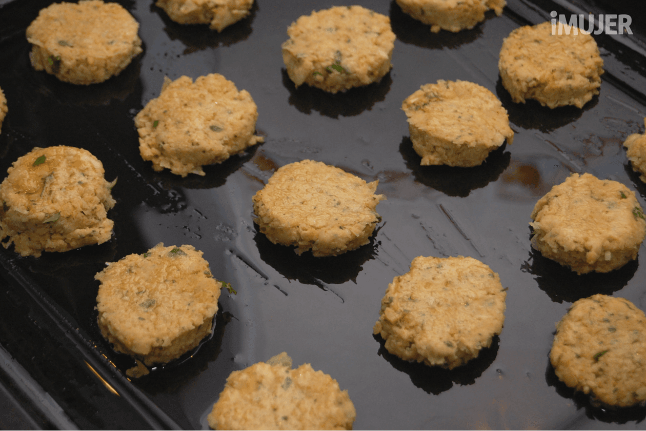 Tienen que parecer hamburguesas chiquitas, pinta con el aceite restante y hornea hasta que comiencen a dorarse por abajo, dalos vuelta y hornea unos minutos más, así nos aseguramos que queden doraditos de ambos lados.