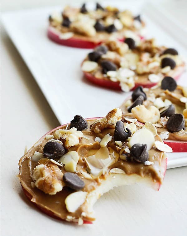 Corta las manzanas bien lavadas en finas rodajas, espolvoréales canela molida, hornéalas por 30 minutos dándolas vuelta a los 15 minutos. Disfruta tus chips de manzana con un poco de mantequilla de maní y frutos secos.