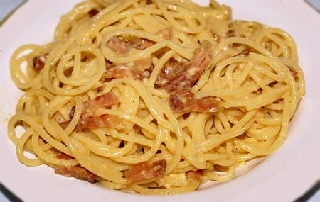 Sin embargo, la carbonara tradicional que separa las dos partes del huevo, cuando se prepara correctamente tiene un sabor intenso, jugoso y muy poco aguado con la yema del huevo más cuajada. Eso, junto con el bacon y el queso potencian una textura mucho más contundente y espesa que le da ese suave sabor a esta especialidad.