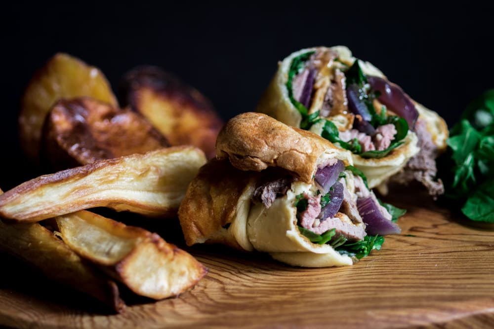 Que el nombre no los engañe, el budín de Yorkshite (o Yorkshire Pudding en inglés) no es dulce. Los británicos usan este cuenco de masa para rellenarlo con salchichas y puré, o para acompañar las carnes, pero también hacen aperitivos salados y suculentos como este wrap de carne.