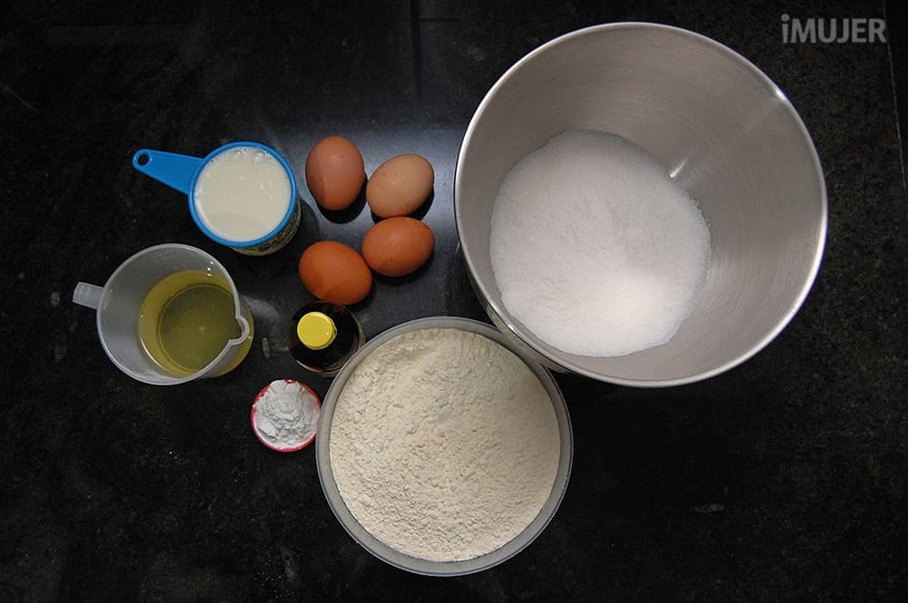 En el recipiente de la batidora coloca el azúcar, el aceite y los huevos, bate hasta obtener mezcla clara y esponjosa.