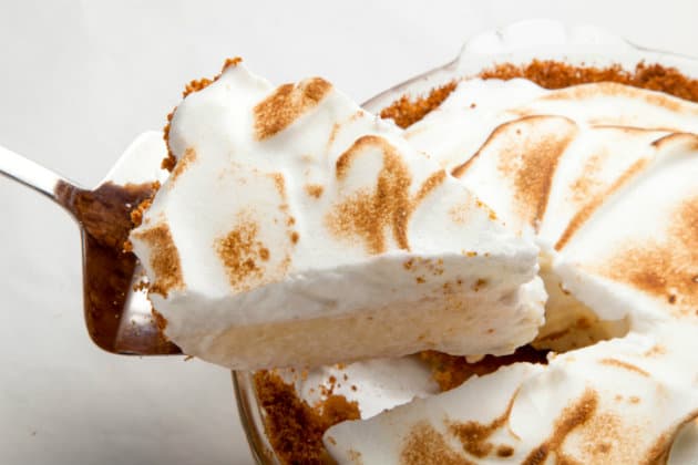 - Coloca el pie en la bandeja para hornear y ponlo en el horno por 10 minutos o hasta que el merengue esté listo y ligeramente dorado.